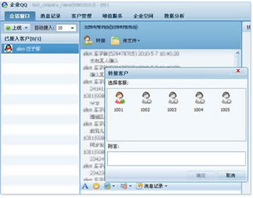 當(dāng)客戶咨詢時(shí),處于當(dāng)前會(huì)話中的員工如果無(wú)法解決或者覺得由另一位員工更能為該客戶服務(wù),則可隨時(shí)使用“客戶轉(zhuǎn)接”功能,可以很方便的由一個(gè)工號(hào)轉(zhuǎn)到的另一個(gè)工號(hào)為此客戶服務(wù)。