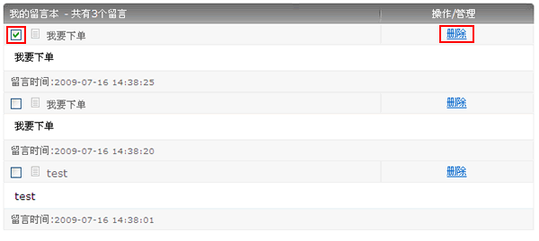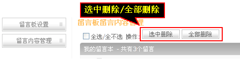 這里是對留言進行刪除操作,可以選中“刪除”或者選中“全部刪除”。