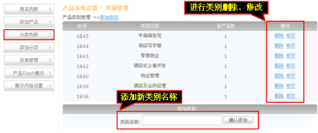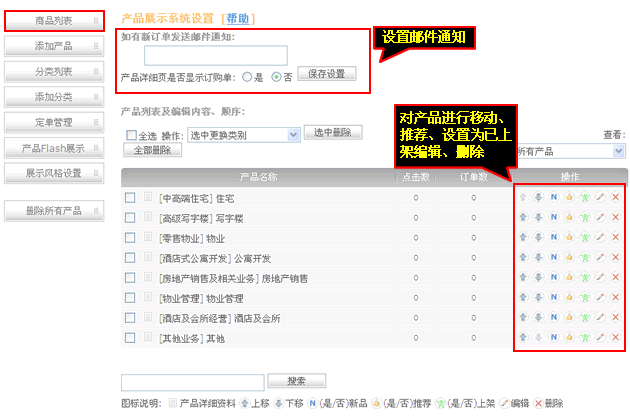 ”,產品管理操作可對產品進行