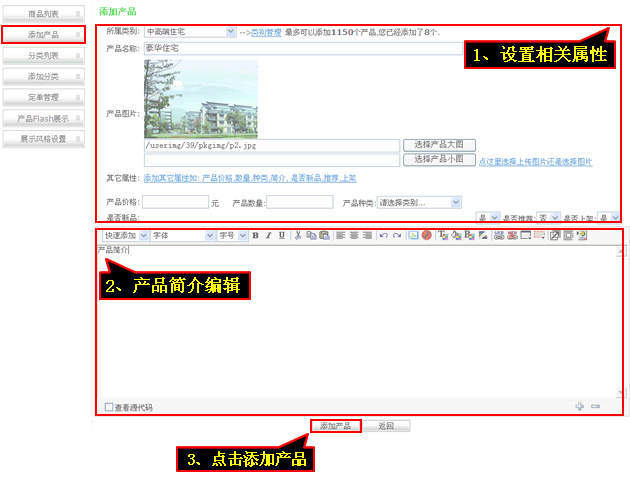 6、產品FLASH屬性可以設置
