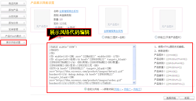 自由編輯產品展示風格代碼