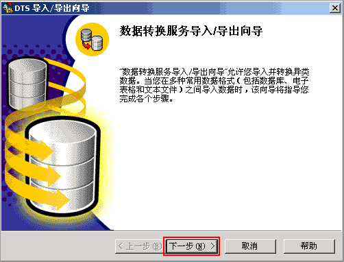 | 2. 進(jìn)入DTS導(dǎo)入/導(dǎo)出向?qū)Вc(diǎn)擊“下一步”按鈕繼續(xù) | |