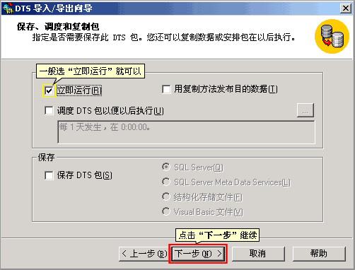 | 7. 設(shè)定調(diào)度方式,一般選“立即運(yùn)行”就可以,然后點(diǎn)“下一步”繼續(xù) | |