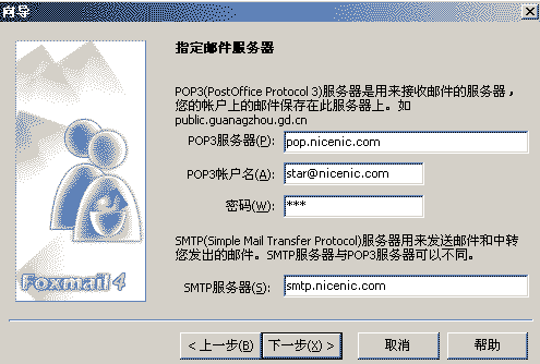 請(qǐng)注意POP3帳戶名一定要寫全稱,例如star@nicenic.com